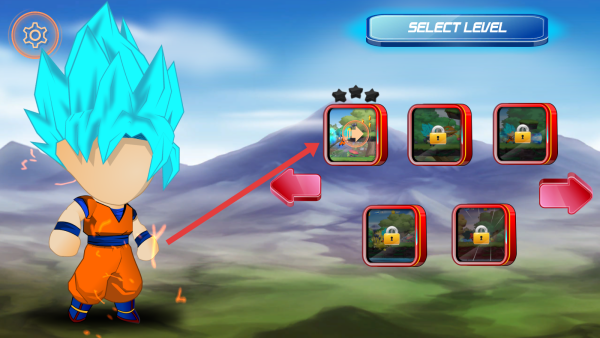 2、在关卡选择界面,按箭头指向,选择已解锁关卡,进入游玩场景。