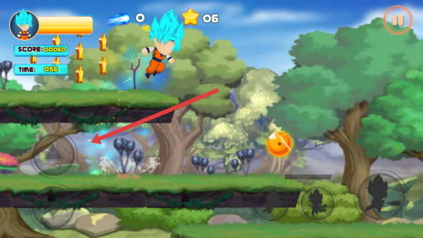 3、操控龙珠角色,按箭头指示,在场景中跳跃、移动,收集星星和龙珠。