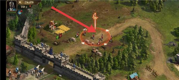 1、看到红色剑标识的敌军,指挥部队前往攻击,利用地形(如城墙)掩护,提升战斗胜率。