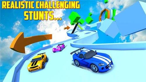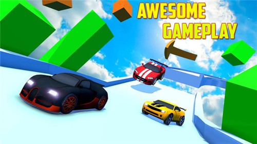 1、高空赛道设定:赛道搭建在云端,融合浮空方块、多变坡度与弯道,打造独特奇幻竞速场景。
