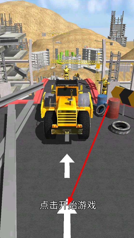 1、进入游戏,点击“点击开始游戏”,选定赛车,进入工地等赛道场景。