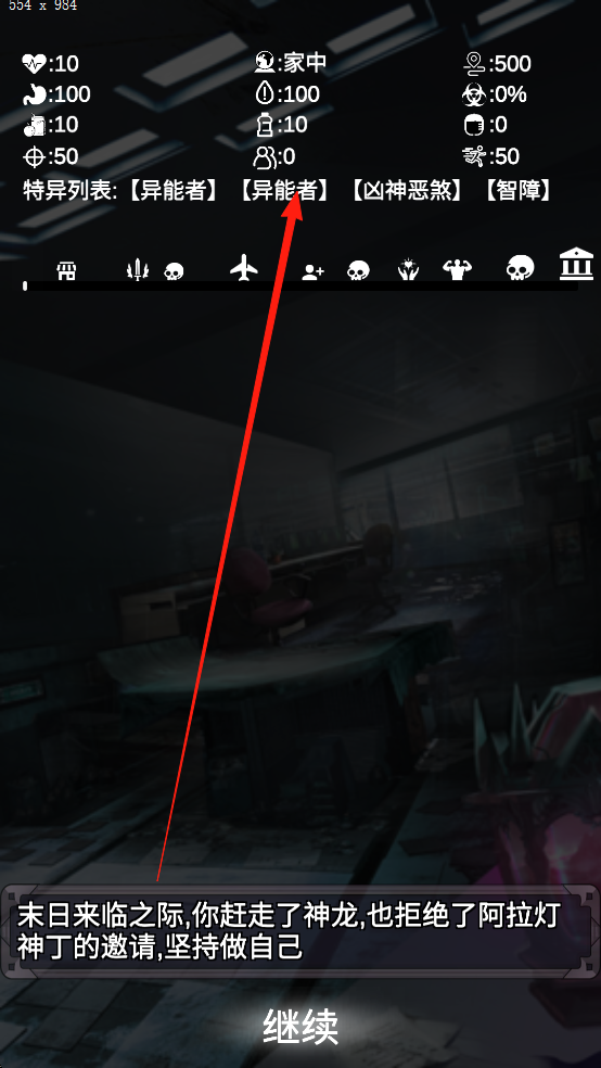 2、数值策略深度:天赋组合产生初始状态,属性分配如颜值影响NPC好感度、智力降低事件失败率与资源管理食物武器血清比例形成复杂决策树。