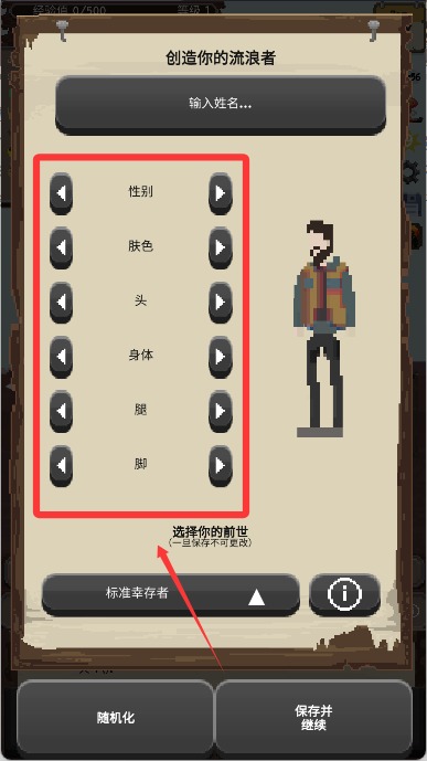 2、然后选择你的角色的外观选项,创造流浪者。