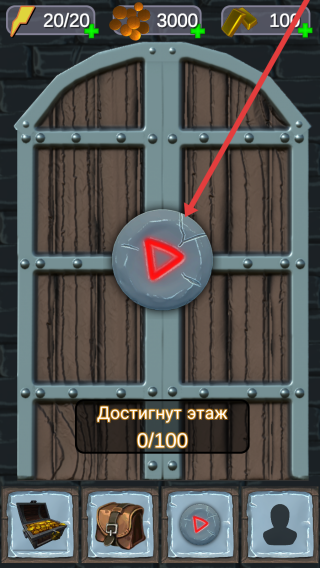 1、在初始界面,按箭头指示,点击红色播放按钮,进入楼层冒险。