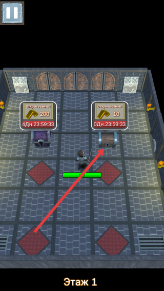 2、进入第1层,按箭头指向,靠近宝箱,可消耗资源开启,获取奖励。