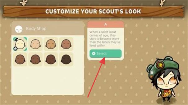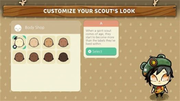 2、进入界面,在“BodyShop”中挑选角色肤色等外观选项,点击“Select”确定,定制侦察员外观。