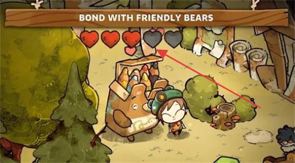 3、在场景中,通过互动提升与友好熊的好感度,关注上方爱心标识了解好感进展。
