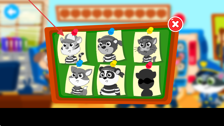 2、嫌疑人员指认推理:从一群犯罪嫌疑人中通过观察与分析,指认出真正的强盗和小偷,锻炼儿童的智力与判断力,在推理过程中提升逻辑思维能力。