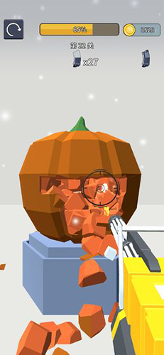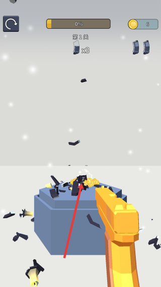 2、进入射击环节,操控武器瞄准目标,射击击碎物体,收集金币。