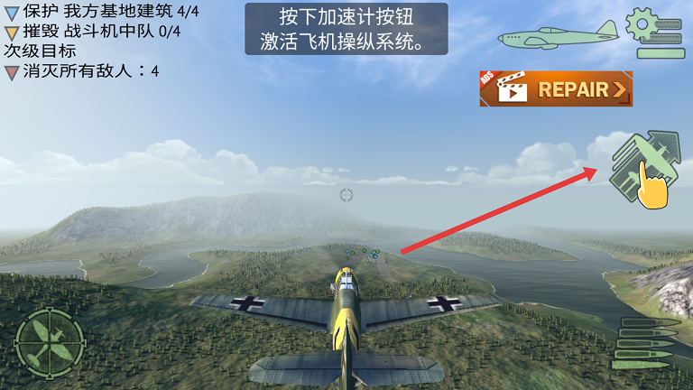 3、跟随引导操作完成训练任务,左手控制转向,右手控制俯冲和射击。
