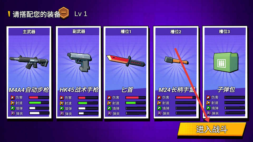 2、搭配装备确保任何困境都能突破重围,后期可解锁更多道具。