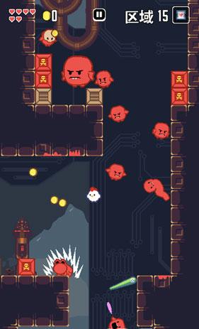 1、基础操作移动:左右滑动屏幕控制小鸡横向移动,向上滑动释放当前道具,双击屏幕触发“紧急闪避”翻滚动作,可用于躲避BOSS的致命攻击或穿越狭窄机关间隙。