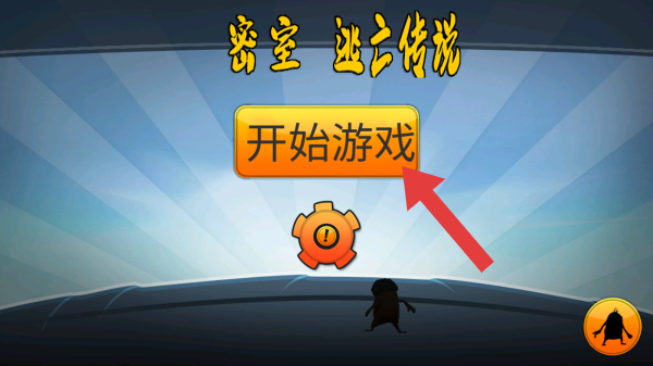 1、这是密室逃亡传说的启动界面,界面上有【开始游戏】按钮、设置齿轮图标(带i标识)以及右侧的角色剪影图标。