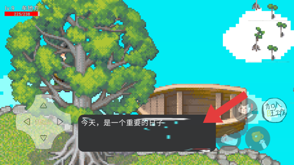 2、大树、木船、岛屿等场景,还有虚拟按键,结合搜索结果里的泰拉瑞亚、迷你世界、蛋仔派对等像素、沙盒类游戏关联,有探索、剧情推进等玩法。