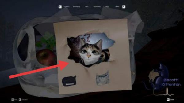 2、在场景中找到带猫咪图案的纸张,调查【BiscottiKittentont】等线索,探索解谜。