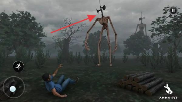 1、野外场景,主角遭遇经典警笛头怪物。