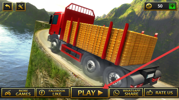 1、需要在游戏的主页面,点击【PLAY】开始游戏,进入运输黄金的驾驶任务,开启卡车运输之旅。