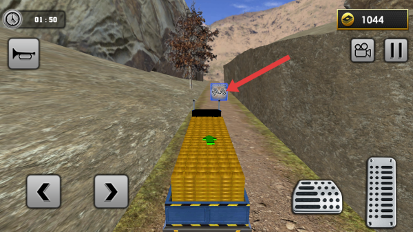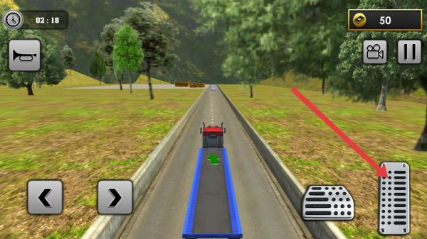 2、在游戏中通过按钮操控卡车,比如按右侧踏板踏板控制加速,需要确保在规定时间内行驶。