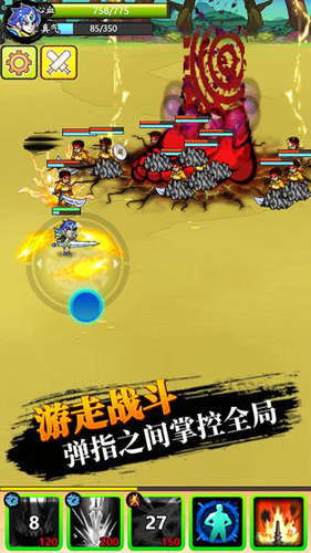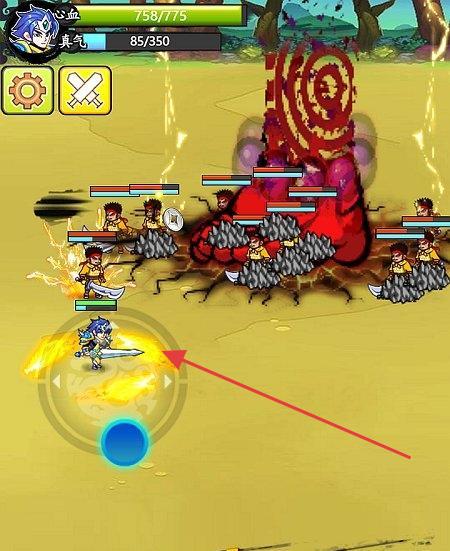 2、战斗时,操控角色(如蓝色头发侠客),利用技能攻击敌方,注意【心血】【真气】消耗。