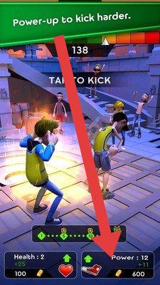 2、看到“Power-up to kick harder.”,消耗资源升级,提升踢击伤害,增强战斗输出,快速击败对手。