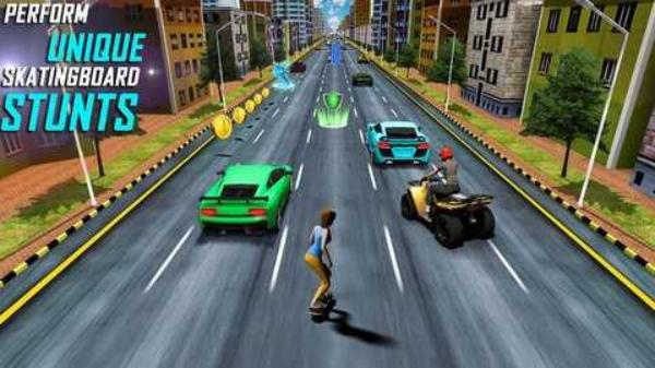 3、自由特技玩法:支持在赛道中施展漂移、飞跃等华丽特技,特技完成度与速度结合计算得分,提升竞技策略深度。