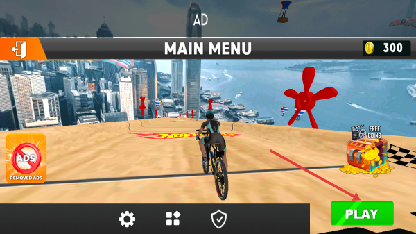 1、点击主界面绿色“PLAY”,进入《自行车特技(推测)》模式选择。