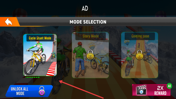 2、选“CycleStuntMode”(自行车特技模式),进入车辆选择界面。