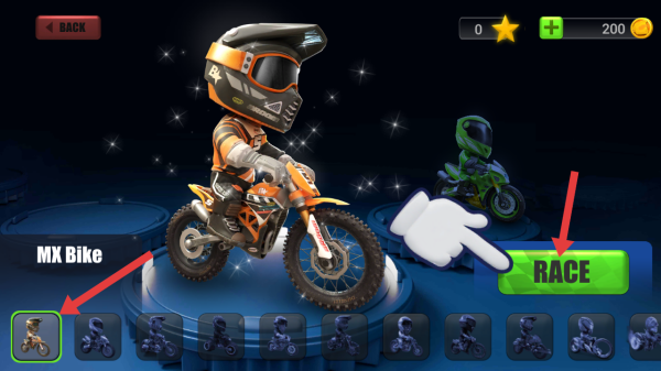 3、自定义装扮系统:可更换骑手的头盔、服饰与摩托车贴纸,打造个性化外观,还能为车辆喷涂渐变色彩与反光特效。