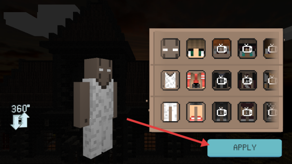 2、角色选择界面,选好皮肤后点【APPLY(应用)】确认,场景有恐怖人形生物。