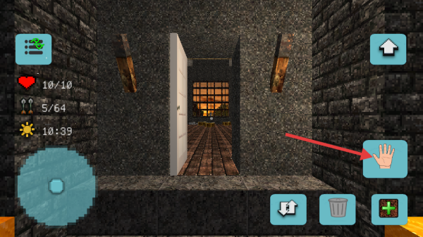 3、游戏关卡内,操控角色(界面有虚拟摇杆、互动按键等),点击手掌图标可互动,探索建筑推进剧情。