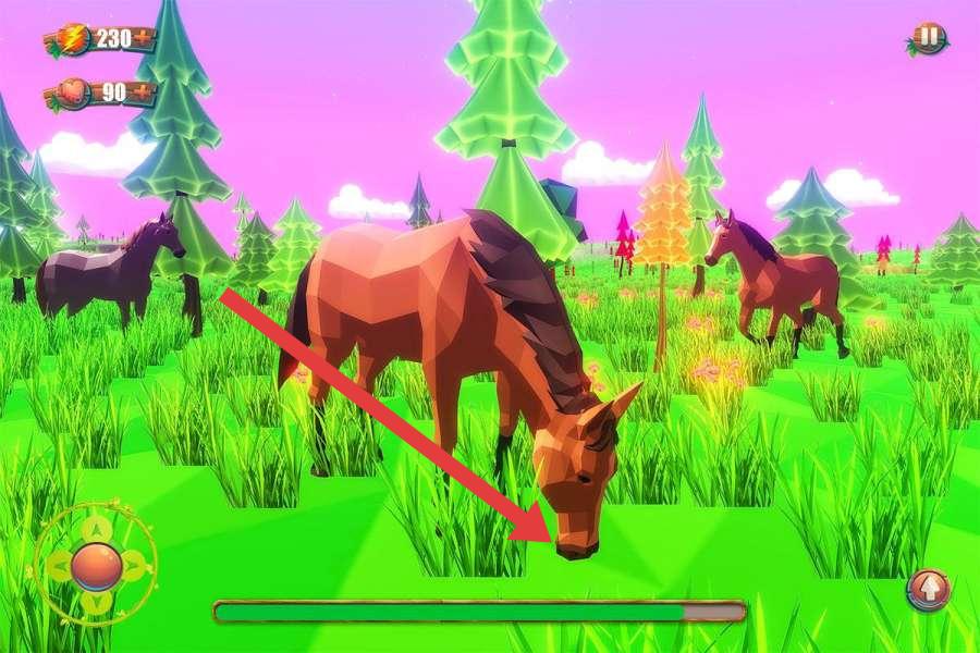 3、当马匹在草地上时,按箭头提示让马匹低头吃草,这一操作可能恢复马匹体力或获取游戏内的资源,提升角色状态。