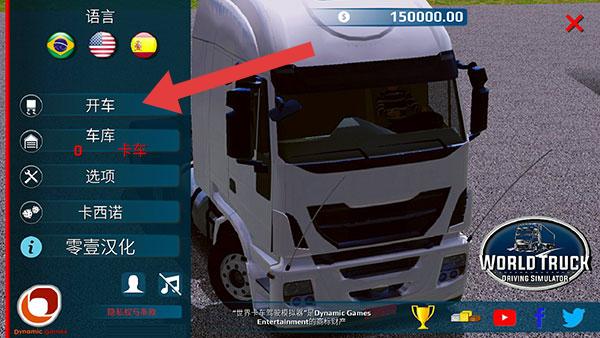 1、在世界卡车驾驶模拟的游戏主界面,需要点击左侧菜单中的【开车】选项,进入驾驶模式。