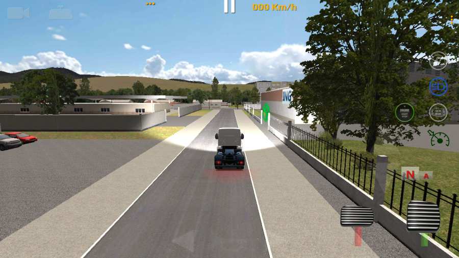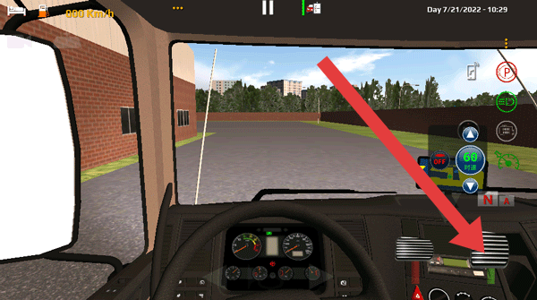 2、在操控者驾驶车辆时,点击右侧相应操作区域(箭头所指),控制卡车行驶相关操作。