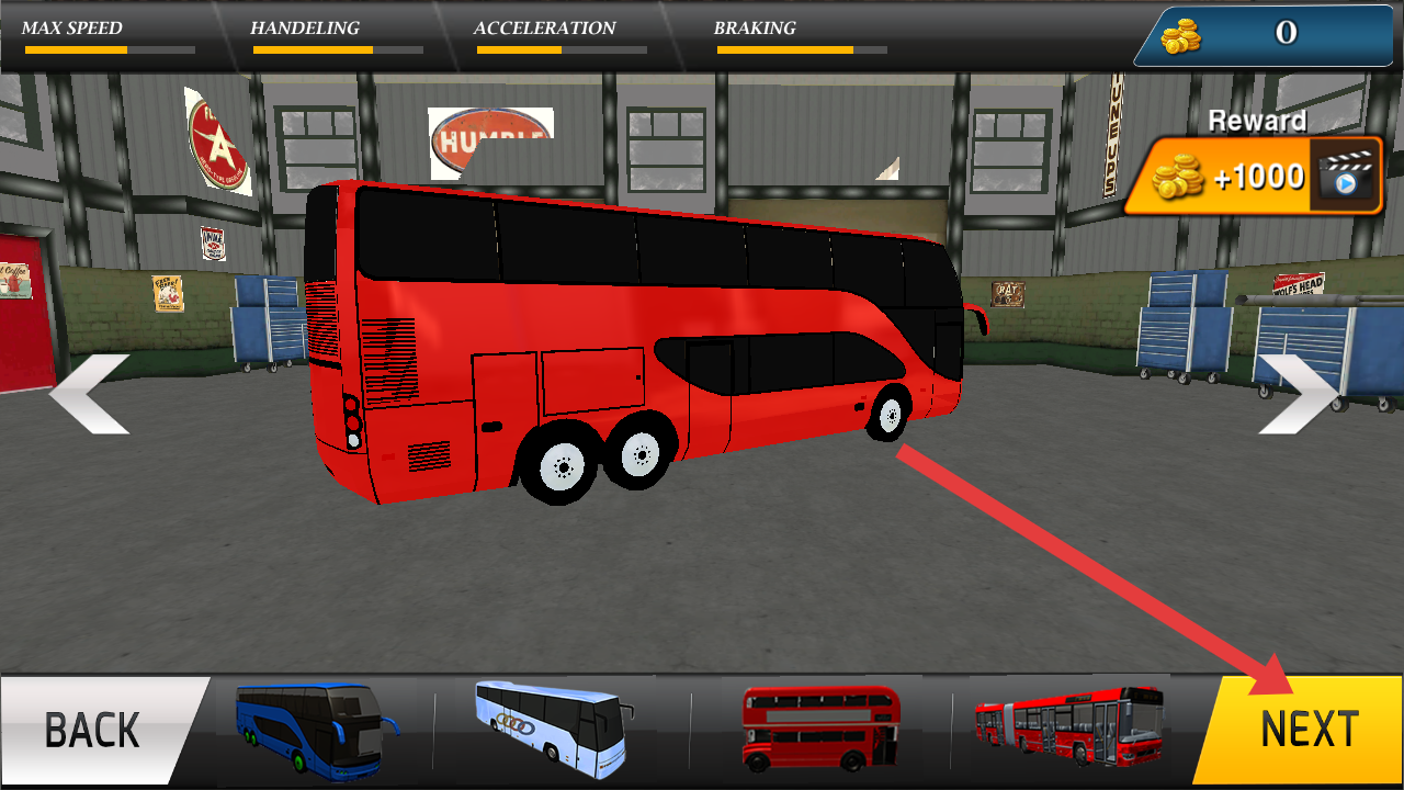 2、在山路巴士驾驶模拟器的车库界面,需要点击【NEXT】选择巴士,进入游戏准备阶段。