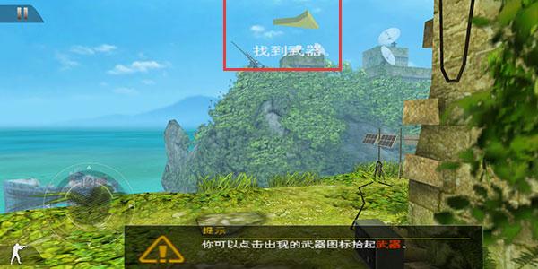 2、根据提示找到武器,你可以点击出现的武器图标拾起武器进行装备。