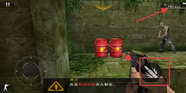 3、点击屏幕右上方的武器按钮给武器装填子弹,点击射击按钮即可进行开火射击。