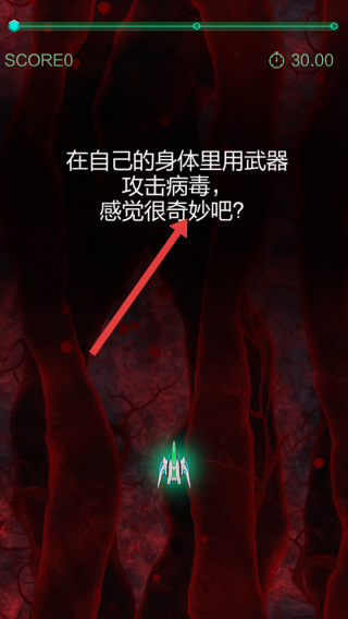 1、游戏开场,了解设定【操控体内武器】,在血管场景攻击病毒,准备开启奇妙战斗。