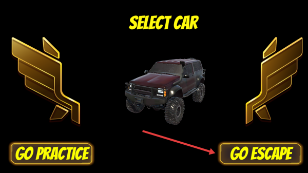 2、选好越野车后,点“GOESCAPE”,开启逃离核弹挑战。