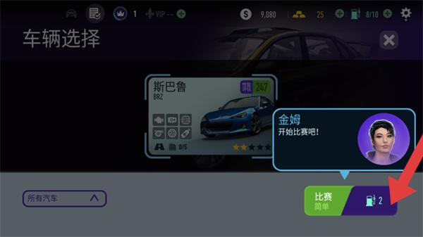 1、在极品飞车无极限的车辆选择界面,选好车辆后点击【比赛(消耗2燃油)】,进入赛车比赛场景。