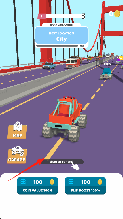 1、进入游戏可从多款动漫风格卡车中选择初始车辆,在新手引导中学习油门刹车操作,开启首次赛道障碍清除冒险。