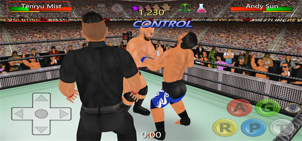3、自主操控格斗体验:虚拟按键实现抓取、摔投、锁技等真实摔跤动作,连招组合随角色属性变化,策略选择攻击时机与技能释放。