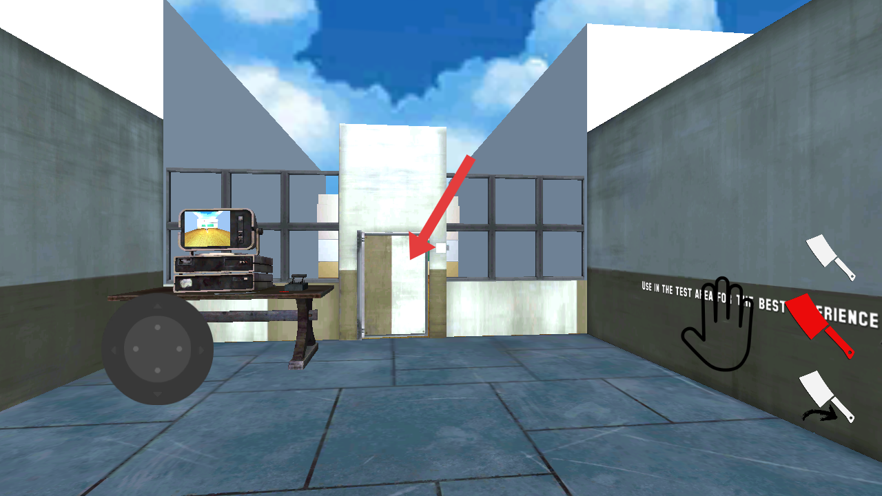 2、进入刺激动画模拟器的游戏场景后,操控者需要朝着箭头指向的门移动,探索游戏环境。