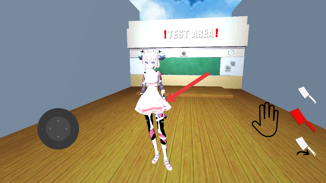 3、推开门后就是角色的测试区域,可以与箭头指向的动漫角色互动,完成相关任务或操作。