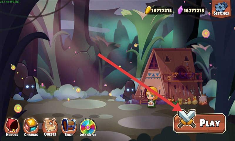 1、在游戏主界面,点击【PLAY】按钮,进入关卡开始冒险,利用角色技能战斗闯关。