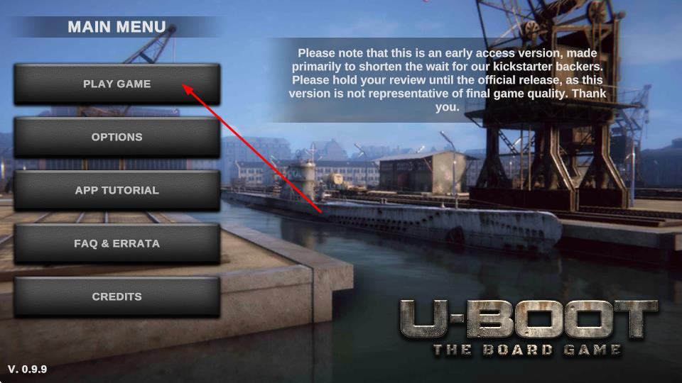 1、打开游戏进入主界面后点击【PLAY GAME】按钮,在潜艇选择界面点击【U-99号】图标进入战前准备场景。