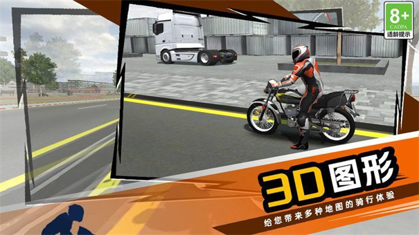 3、利用虚拟按键(加速、刹车等)操控摩托,在开放道路(城市环境)行驶,体验驾驶玩法。