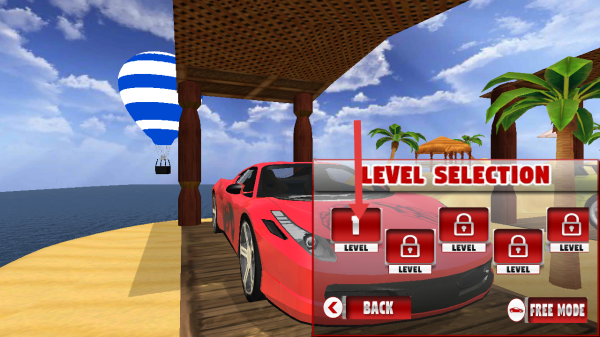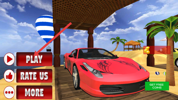 1、点击【PLAY】按钮,进入游戏,可驾驶红色跑车,在海滩场景开启竞速挑战。