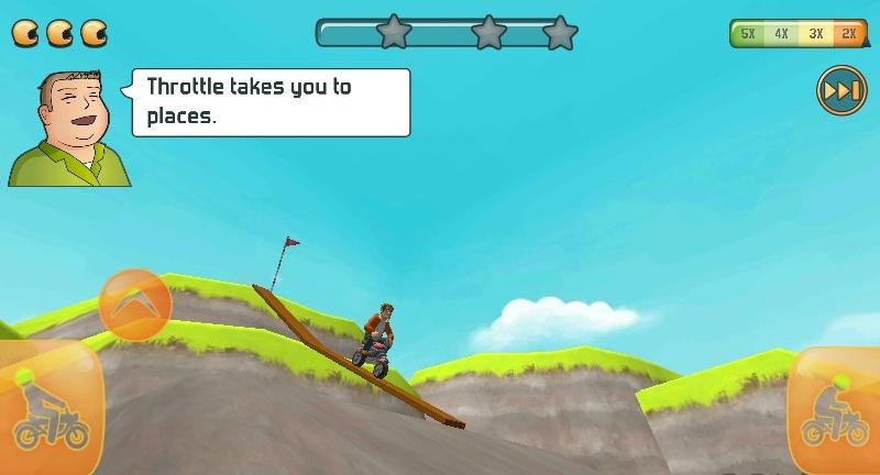 2、根据提示【Throttletakesyoutoplaces.】,点击左侧摩托图标,操控油门加速,挑战坡道。