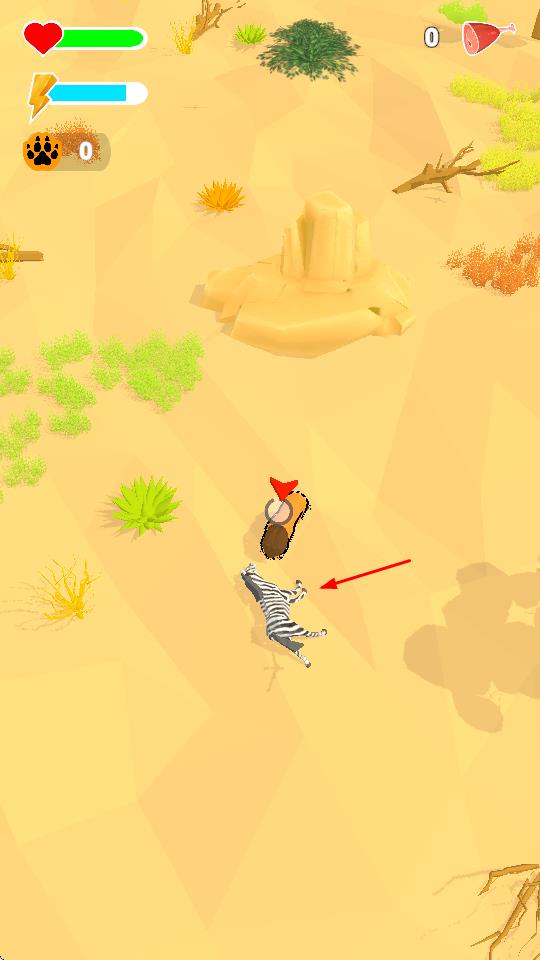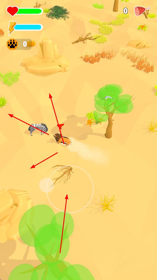 1、操控动物追捕斑马等猎物,靠近后攻击,成功猎杀可获取食物,维持生存。