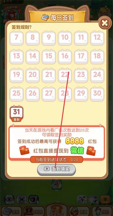 2、点击“每日签到”,按规则完成签到(如达到看广告次数),可领取对应红包奖励。